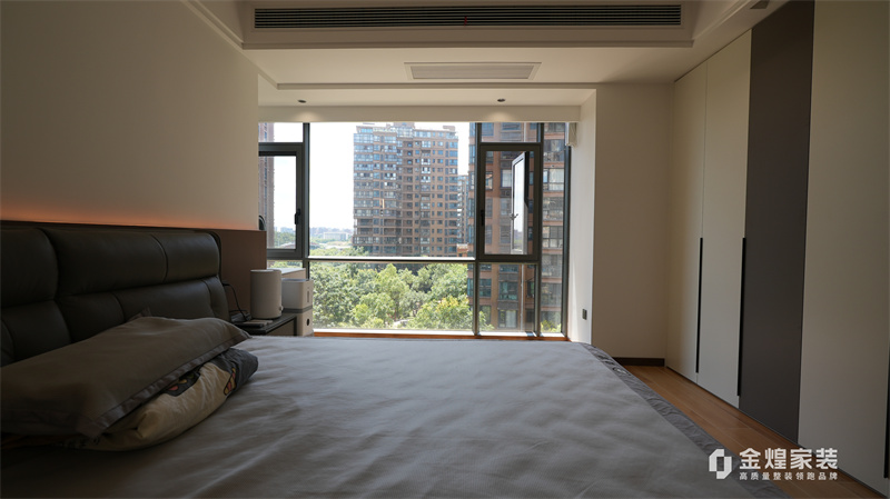 整體色調以黑白灰為主,簡潔明快,沒有過多的裝飾,體現了現代意式風格的特點。客廳的布局開闊,家具的選擇也以簡約為主,如黑色皮質沙發、簡潔的電視柜等,都符合現代人的審美。