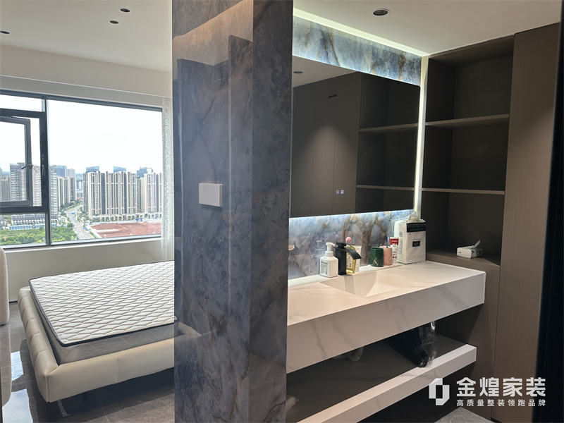 本案例樓盤為國貿前海灣,面積130平的現代極簡風格,完工工期90天.